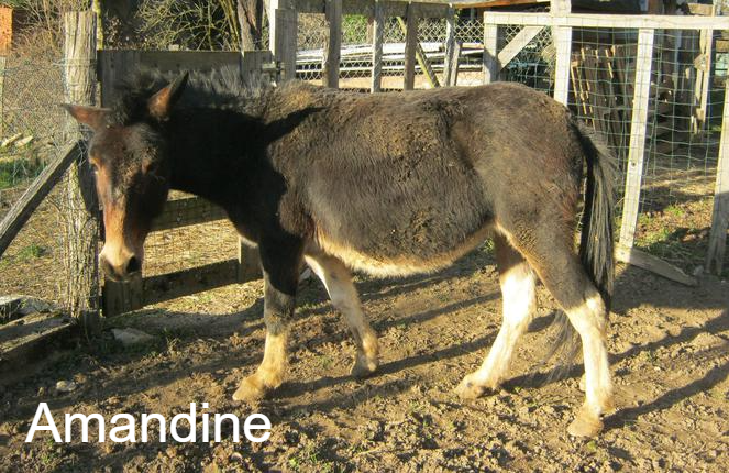 Amandine is a ten years old mule, that we took in when she was 18 months old. Her owner wanted to take her to the slaughterhouse because of skin problems.