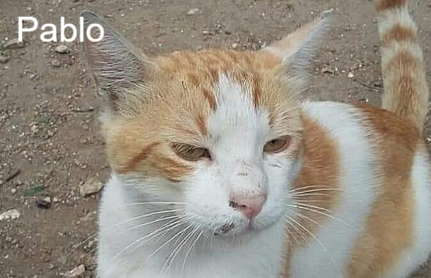 “Pablo is a cat who has been living outside for 5 years. When he arrived in the street, the poor thing was only 6 months old. Recently, he was seriously injured by a snake: his muzzle is damaged, and he has bite marks on one of his hind legs.