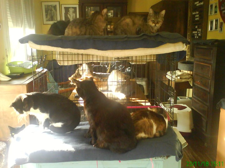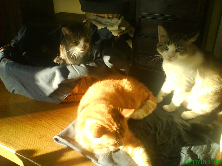 on voit qu'ils apprécient le confort de ces couvertures ! c'est super pour eux, des caresses à tous ces minets et merci à vous de vous en occuper si bien !