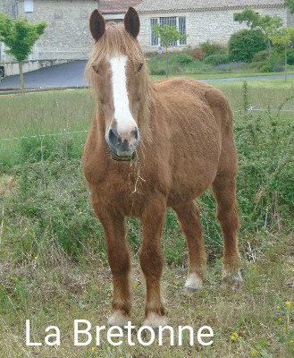 Âgée d’environ 23 ans, cette jument de trait bretonne a travaillé toute sa vie attelée ; à cause d’une blessure sur un postérieur, elle a dû prendre une retraite anticipée et a rejoint notre association…
