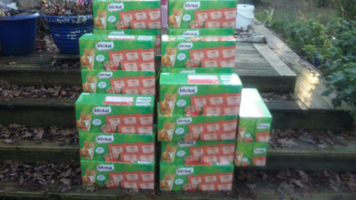 De nombreux sachets pour nos nombreux chats libres, nous en nourrissons 377 !!