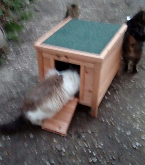 Je vois que les niches plaisent. Merci à vous de vous occuper si bien de ces petits malheureux. Bonne continuation, bisous à vous et papouilles aux chats.