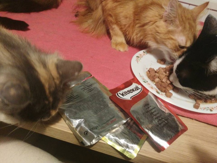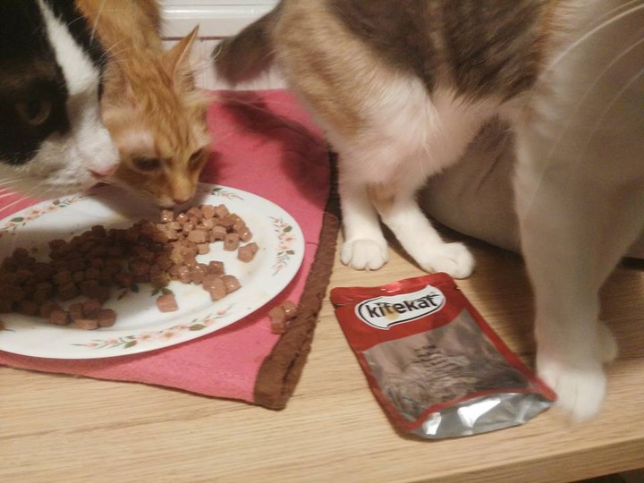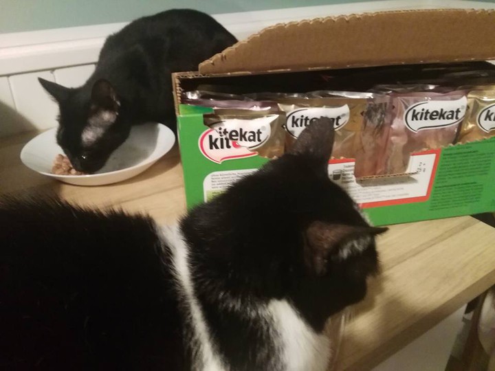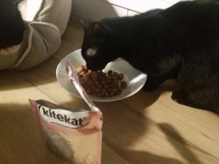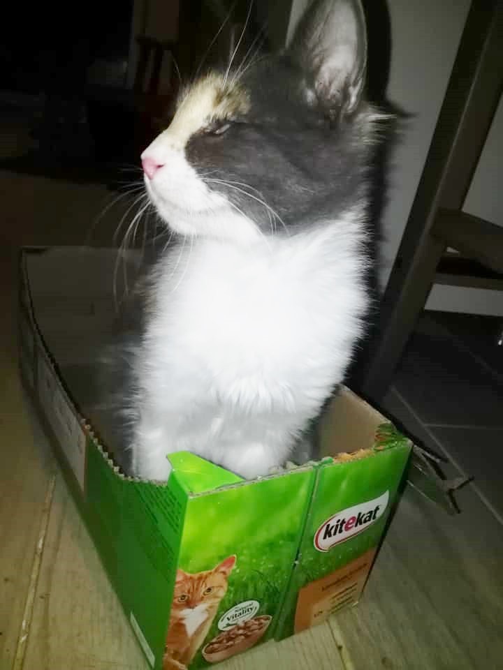 Opaline : Opaline a apprécié les sachets fraîcheur kitekat, elle s'est même servie de la boîte pour en faire son dodo :-) pour l'instant l'état de son oeil ne s'est pas amélioré elle devra subir une intervention pour lui enlever