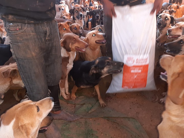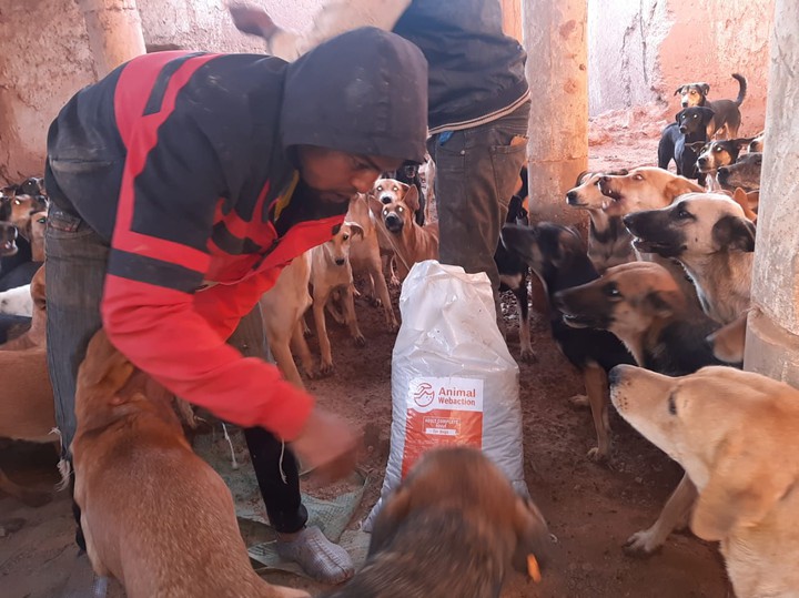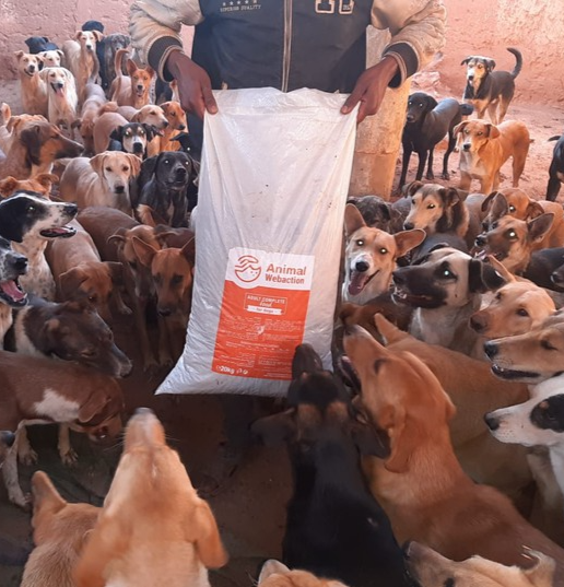 This delivery was funded by several campaigns. : SOS famine 750 chiens au Maroc !