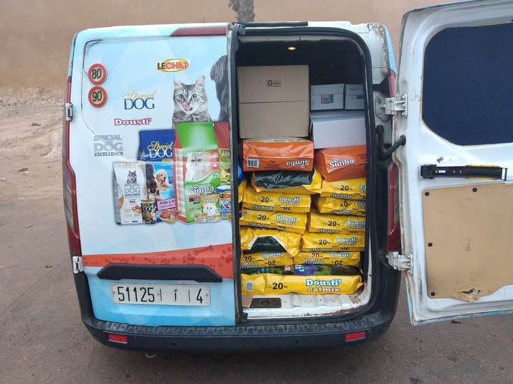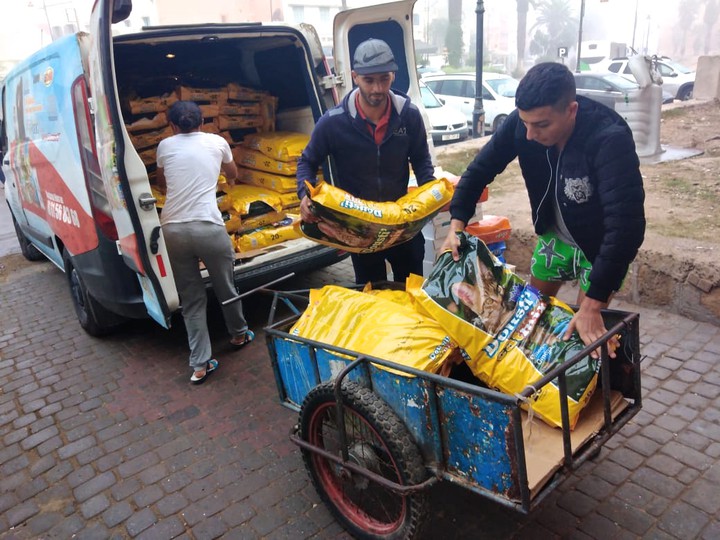 This delivery was funded by several campaigns. : Famine chats des rues Maroc