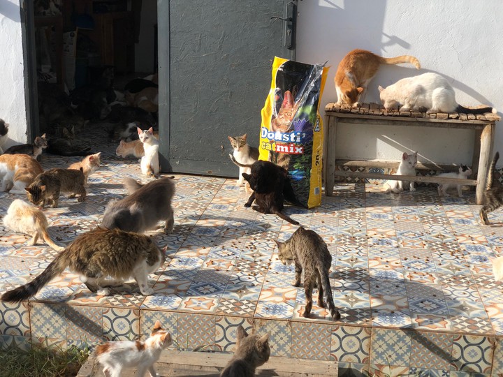 About 2 months of stocks for the street cats of the sponsors of Essaouria neighborhood that I take care of, and for the cats of my shelter La kasba de Loulou.