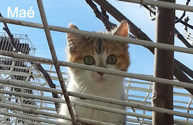 Maé n'est pas arrivée chez nous toute seule. Elle a volontairement été abandonnée devant le refuge... avec ses chatons !