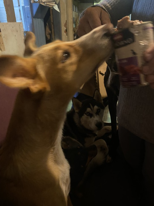 Les chiens les plus fragiles sont maintenus dans des enclos intérieurs, mais il n'y a pas de place pour chacun des 130 chiens. Sans croquettes, tous n'aurons pas les ressources pour lutter contre les grands froids.
