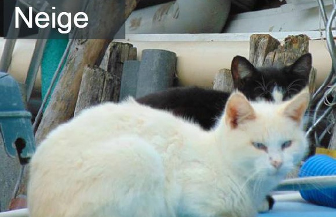 Très éprouvé par ces conditions de vie, Neige est mal en point : il a la gale dans les oreilles et des puces plein les poils… En outre, il était régulièrement battu par les autres chats et a de nombreuses égratignures.