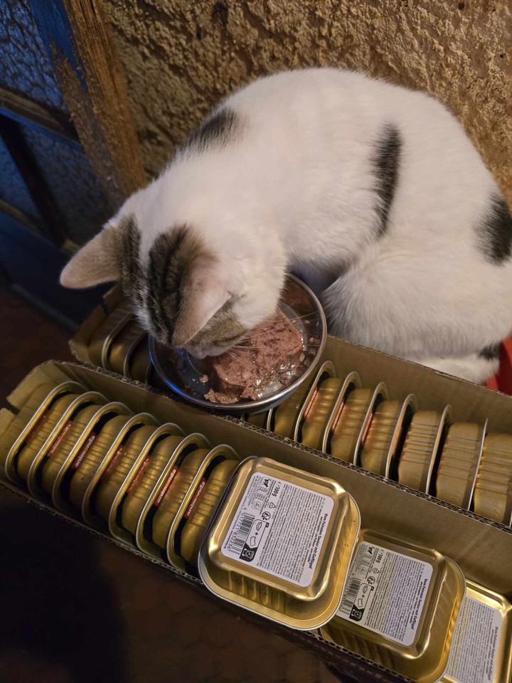Hello everyone! We've received the canned food that will delight our cats. All this is possible thanks to you who support us in our collections! A huge thank you to all of you for this solidarity for our cats. Kisses