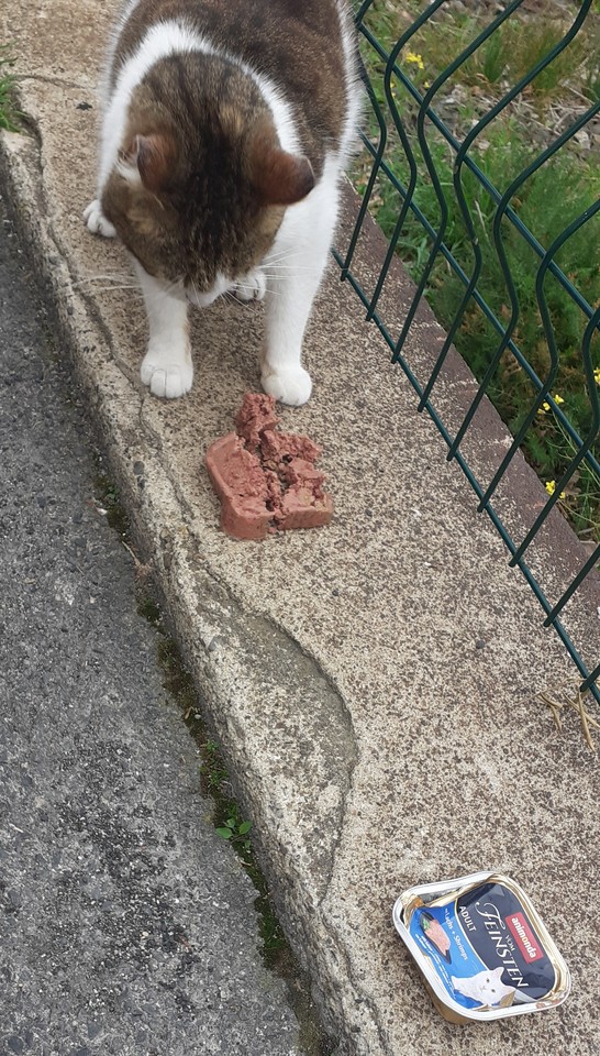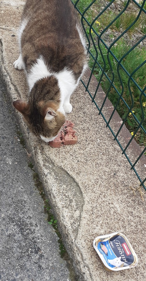 Contente pour vos protégés qui apprécient les pâtées et pour Filou qui a trouvé la solution pour se mettre à l'abri. Merci à l'association de prendre soin d'eux.