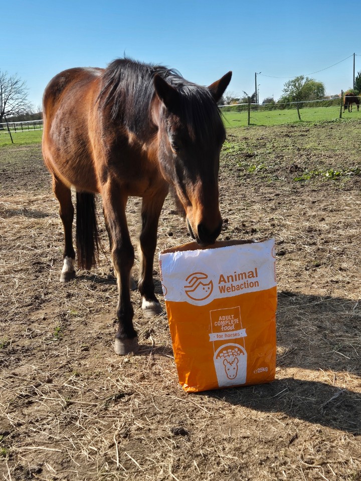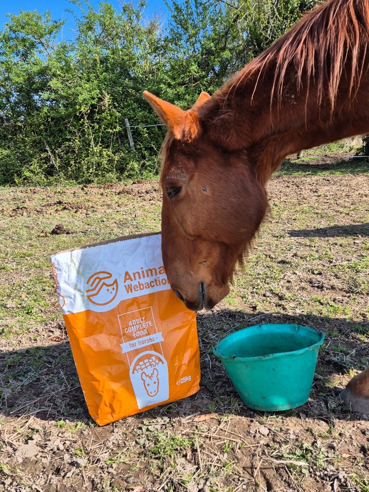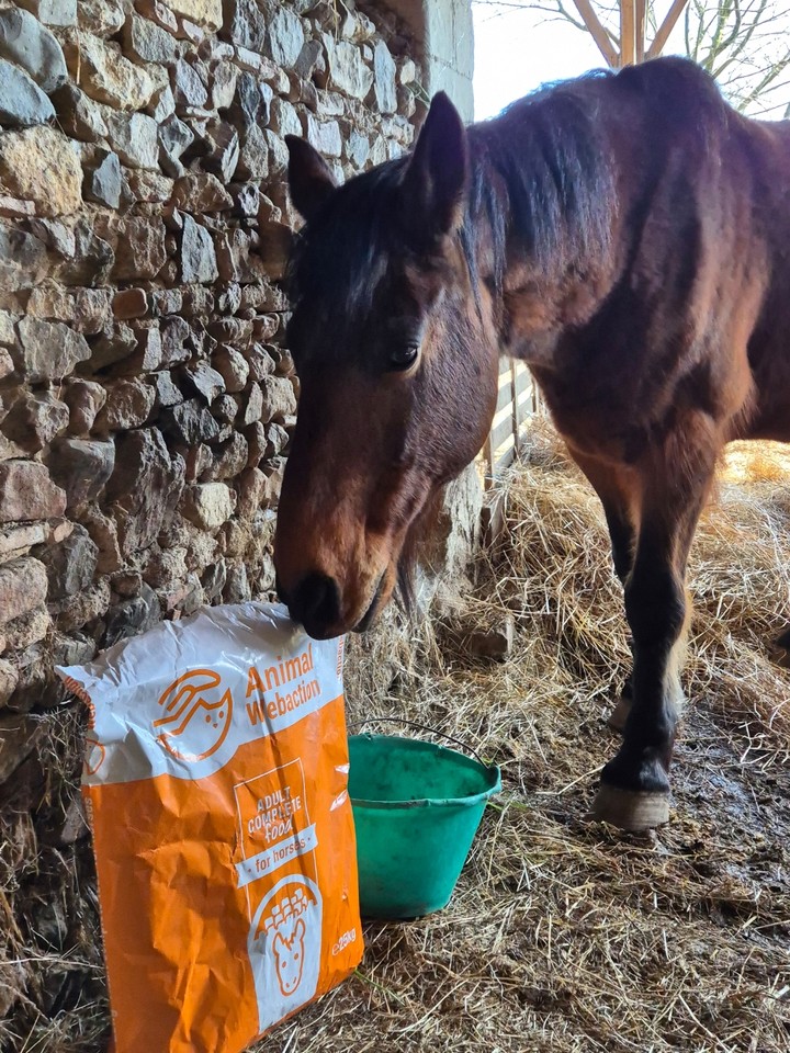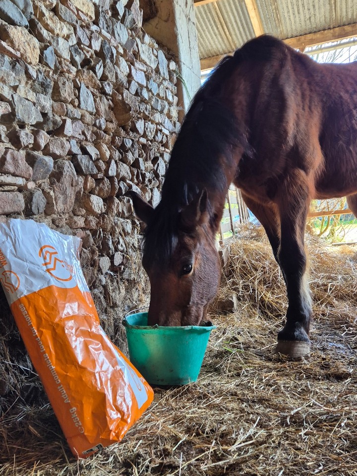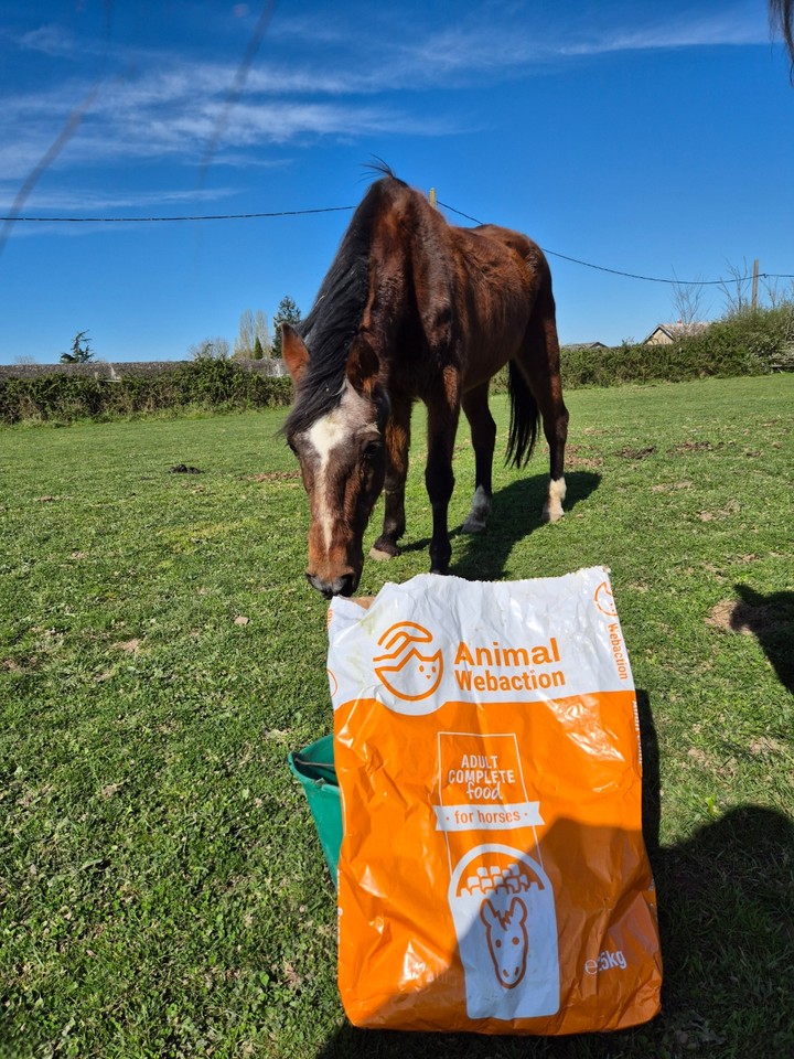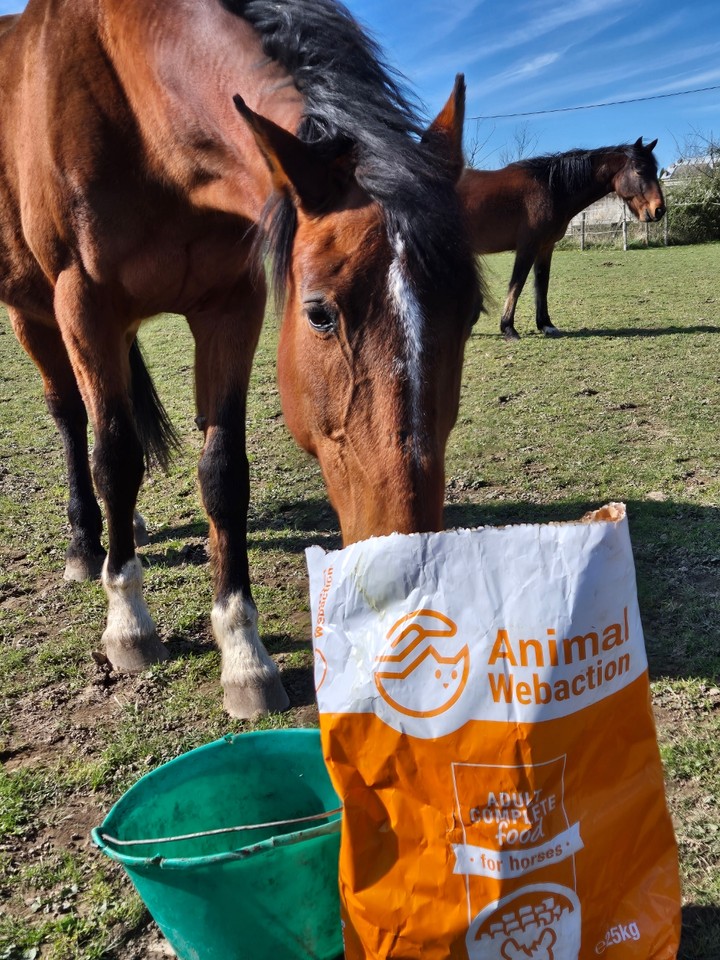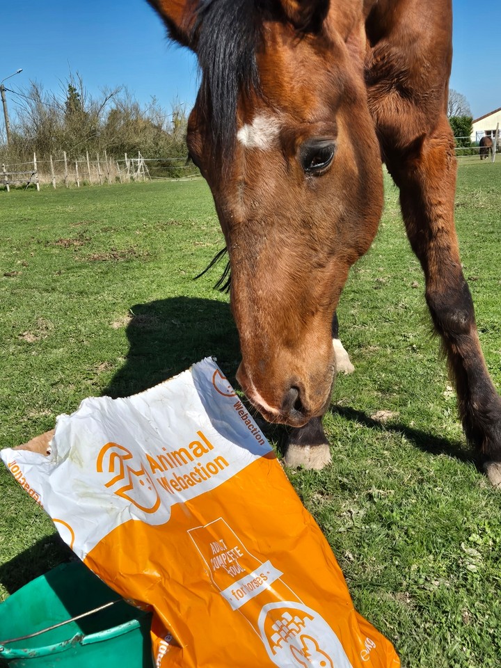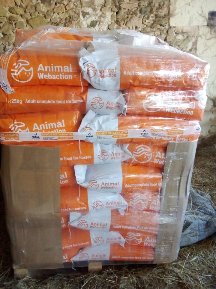 Espoir : A HUGE THANK YOU to all the CUSTOMERS and DONORS who took part in ESPOIR-FARO's pellet drive! ESPOIR also needs to be supplemented, and these pellets are essential for the nutritional intake that hay cannot provide.