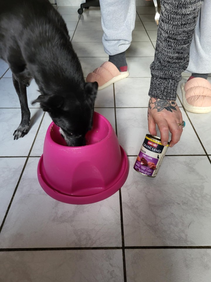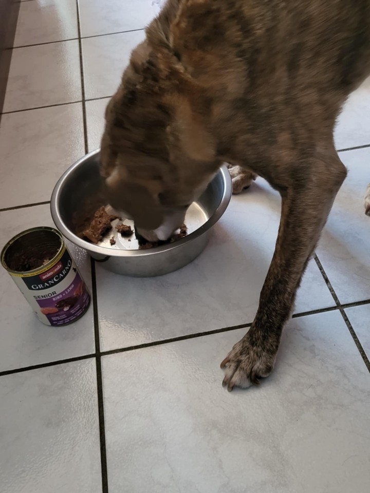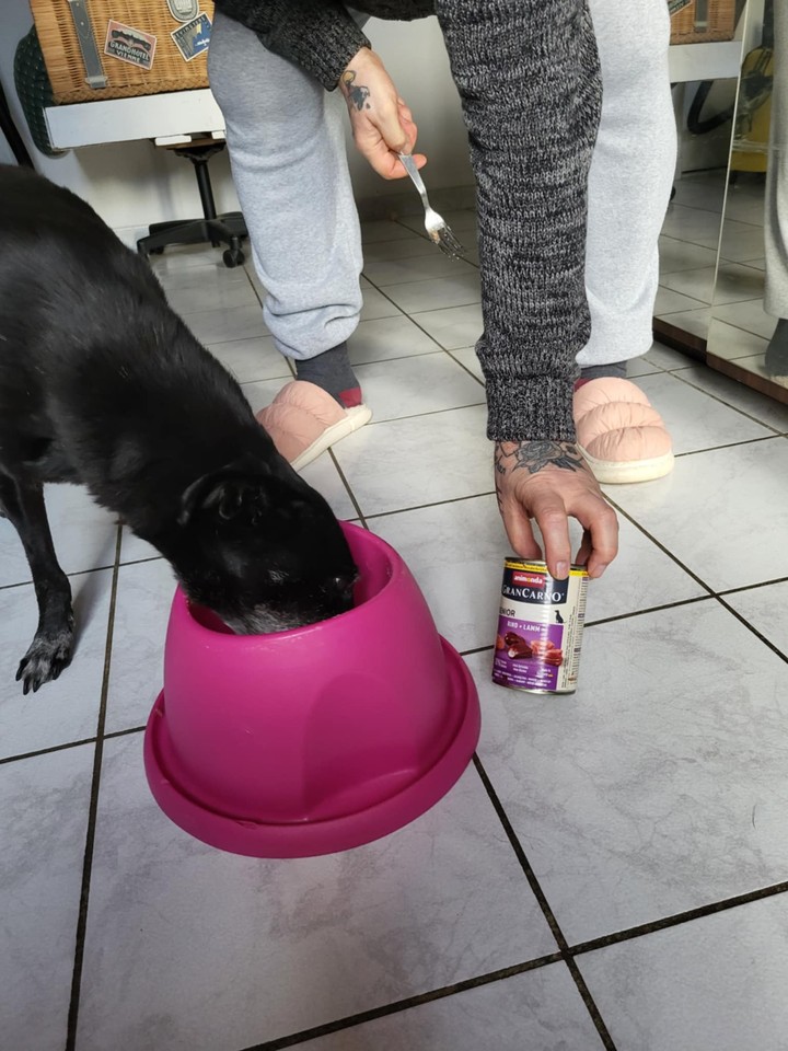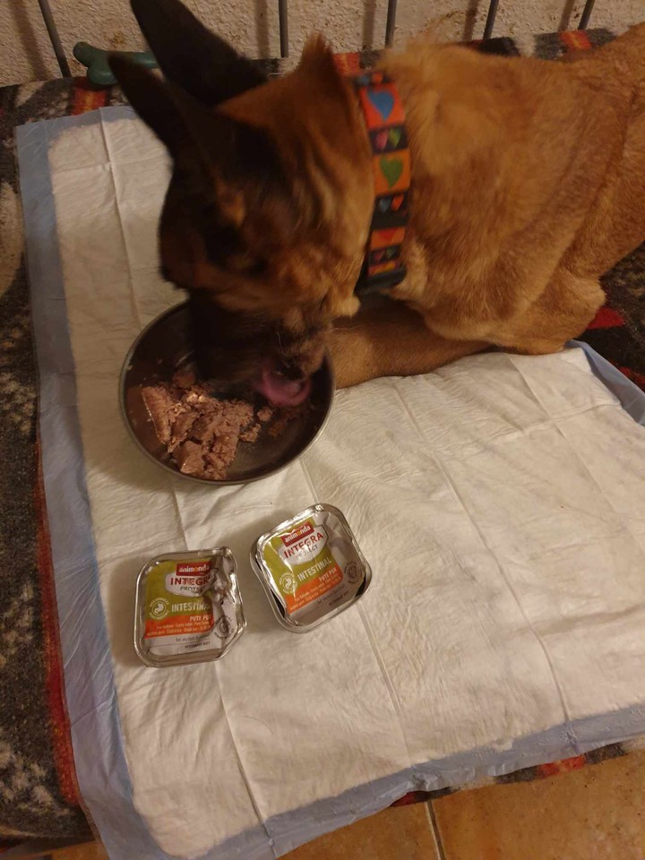 Noisette : NOISETTE's liver treatment seems to have worked well. She no longer systematically throws up her bowl. It's also great to see her happily eating her new pâtée!