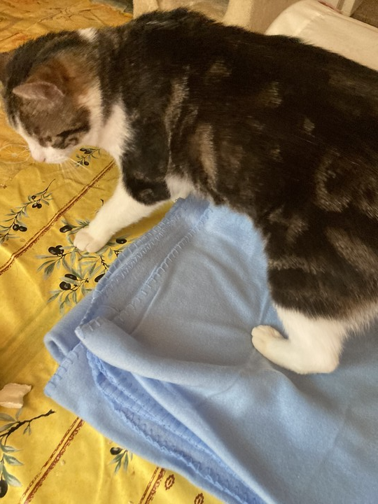 Vermouth : Vermouth enjoys the comfort of the warm blankets, because even in spring, it gets chilly at night in Ariège. Thank you for your help.