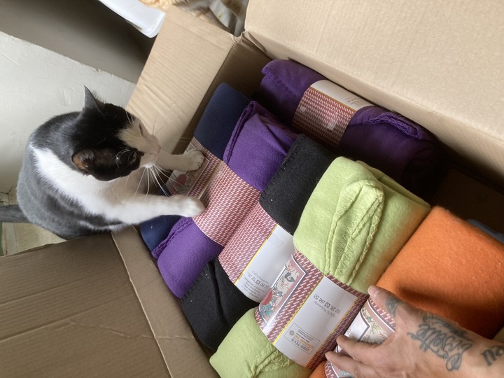 We are very happy to have received these 26 warm and sturdy blankets, which will benefit animals who donβt always have the chance to have a cozy home.