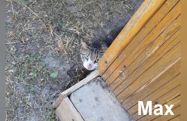 Les conditions de vie de Max ne l'ont pas aidé à se mettre en valeur « il est blessé sur la face et couvert de croutes. On ne sait pas encore s'il s'agit des cicatrices de bagarres avec d'autres animaux ou d'une maladie de peau. Pour le moment, l'urgence, c'est de le requinquer. »