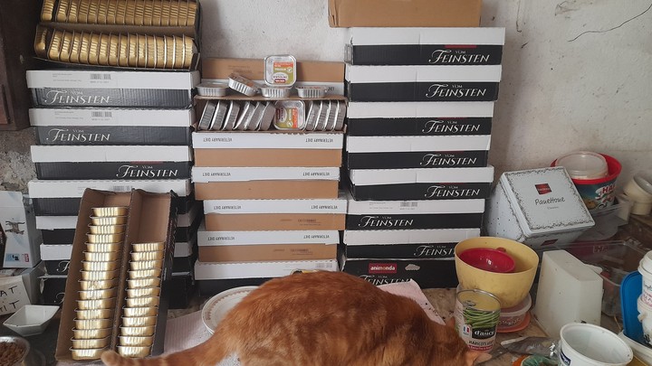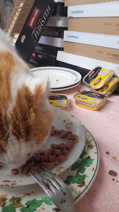 We were so afraid that these collections would not succeed, and here we are, the canned food has arrived and the cats are pouncing on it. The sick ones and the kittens are changing day by day. Thanks to all the kind souls who made this happen. A thousand thanks.