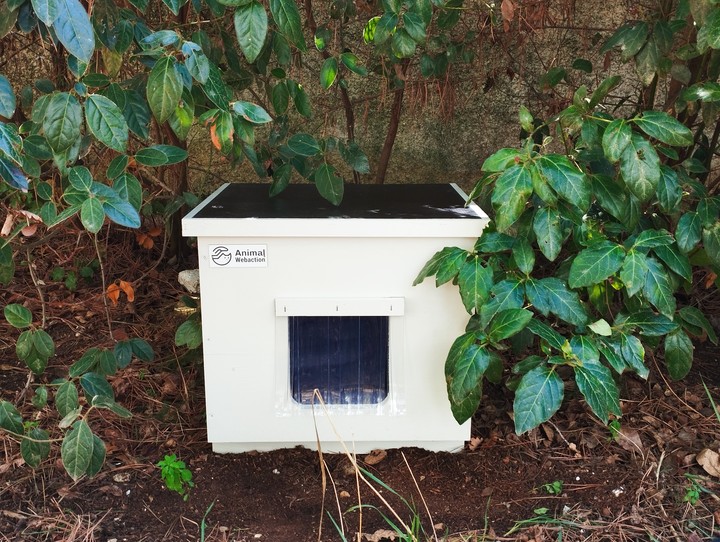 Junior : Junior is doing well at the moment, he goes back and forth outside and inside. He sleeps inside and sometimes in a shelter I made in my garden. Thank you.