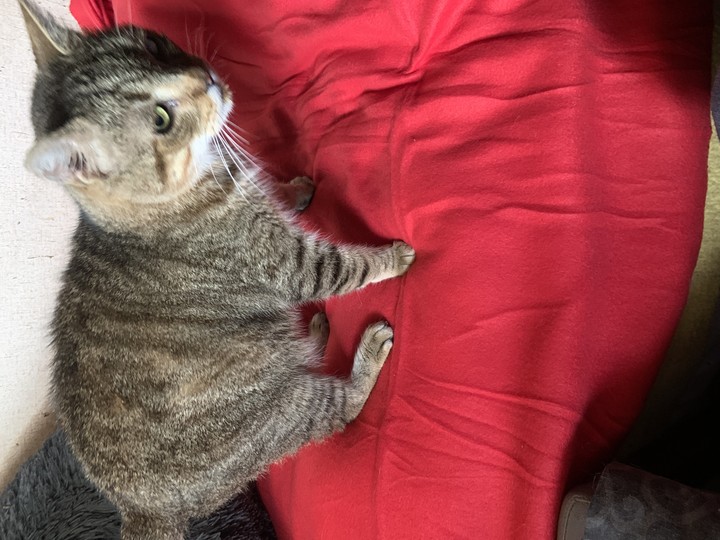 Papidou : Papidou loves to lie on the blanket, but he is mischievous because every time I come in, he comes to see me. So, it's hard to take a picture of him.