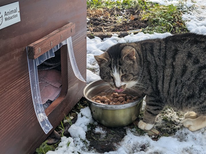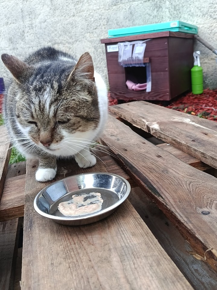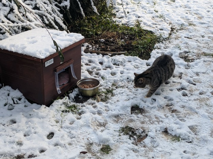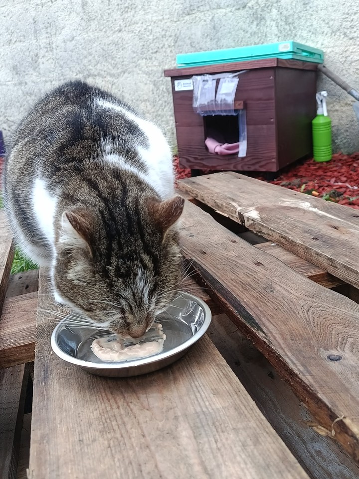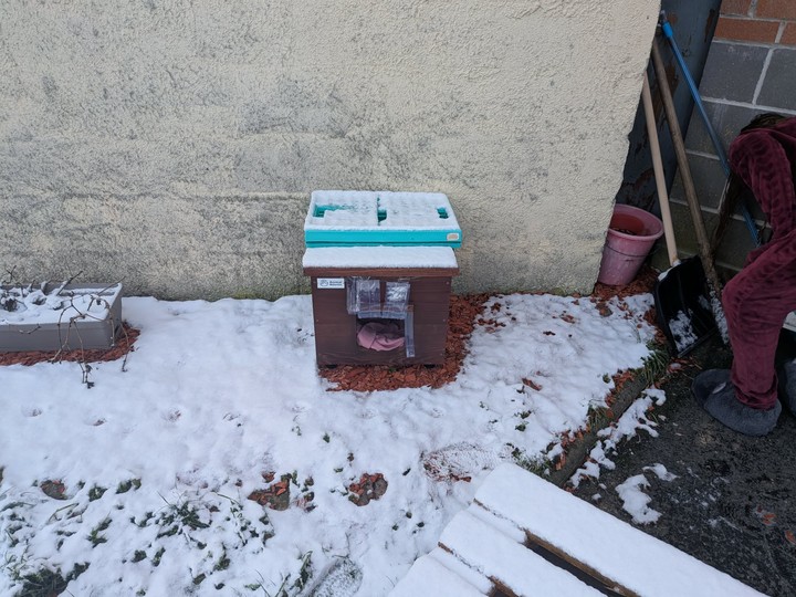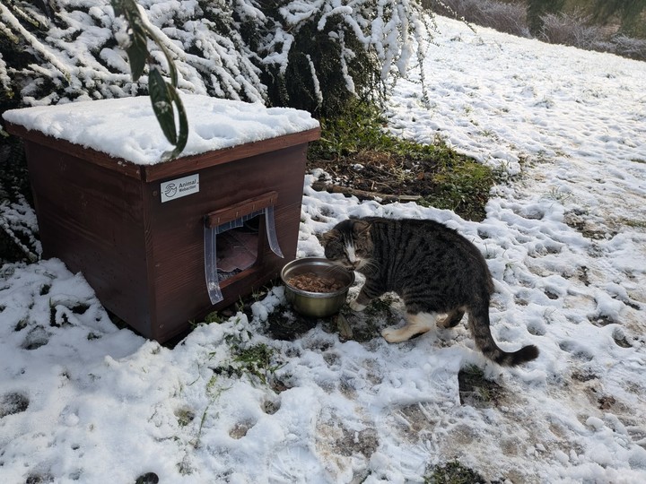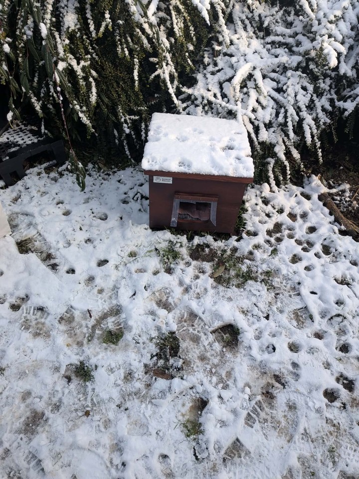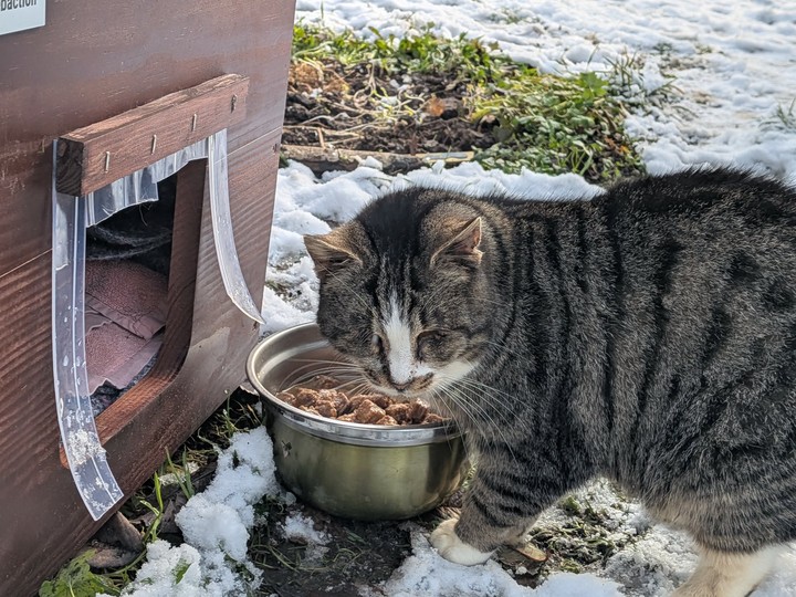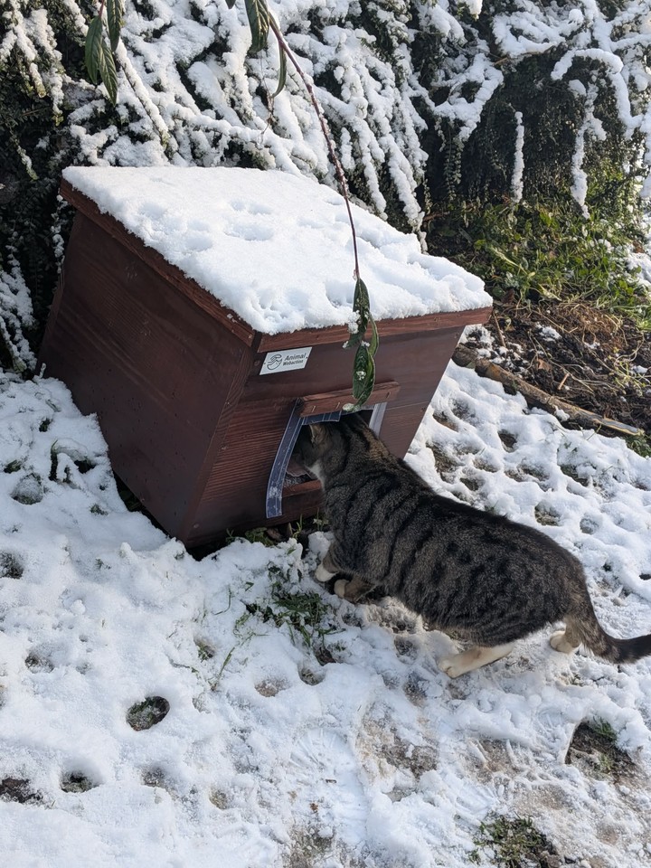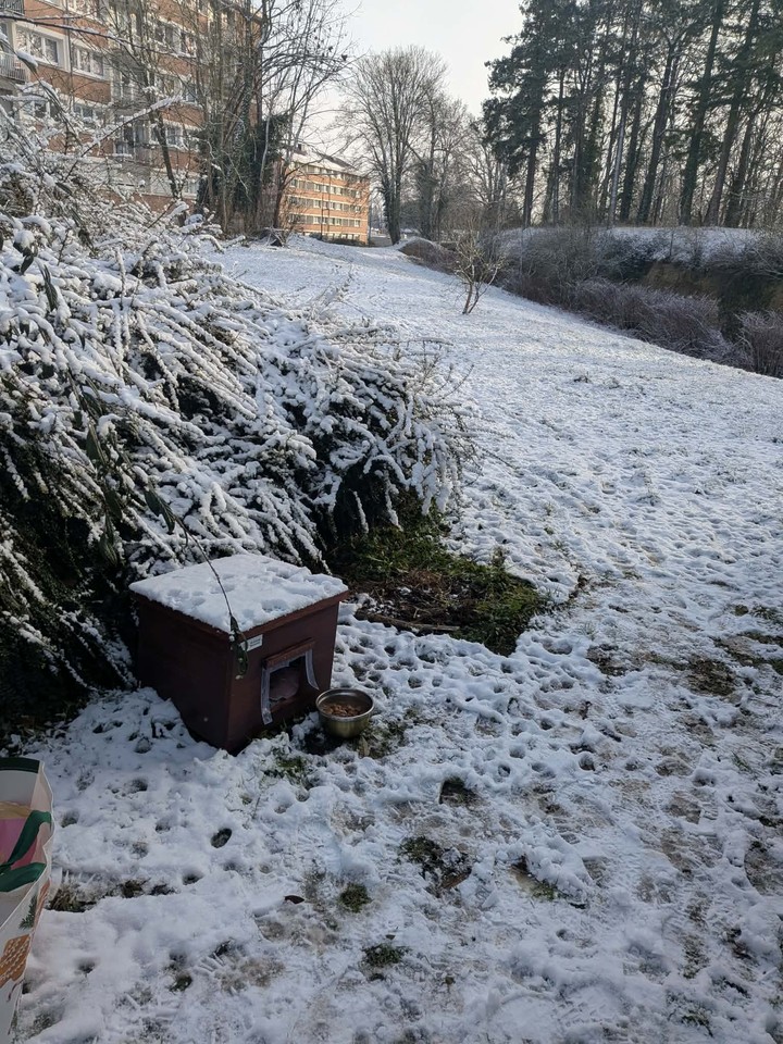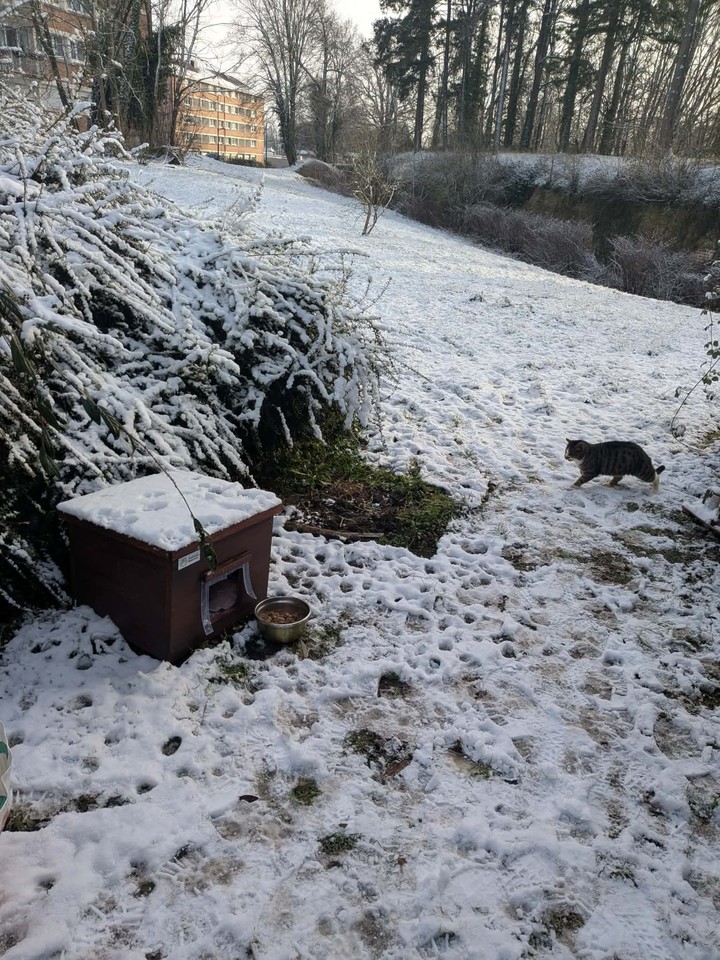 Minette : Minette remains as discreet as ever, and it is still difficult to get her in the picture. During the day, she roams a lot, but as soon as night falls, she takes refuge in her shelter to shelter and keep warm. Unfortunately, Minette had to be trapped when she stopped eating. She was then put to sleep in order to be examined, and the verdict came out: a nice infection in the mouth. Several teeth had to be removed, along with a good scaling, to relieve her. Today, Minette is doing much better. With the cold, she seems to particularly appreciate her shelter, which offers her comfort and security. Even if we still can't photograph her in front of it — she runs away at each visit — we know that she finds refuge and comfort there. Minette wants to thank you from the bottom of her heart for improving her living comfort. Thanks to you, she can now face the winter more serenely and safely ❤️