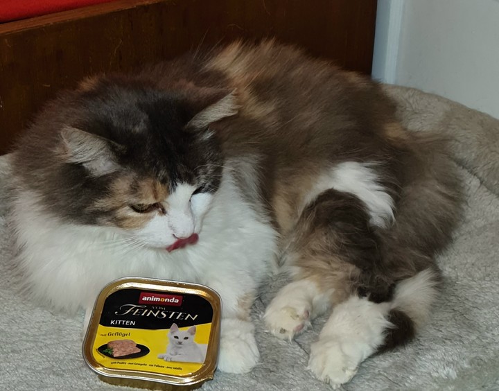 Anaïs : Anaïs has become a beautiful cat thanks to the canned food received! Her health has greatly improved and she is happy because she has been adopted by her foster family. Thank you all!
