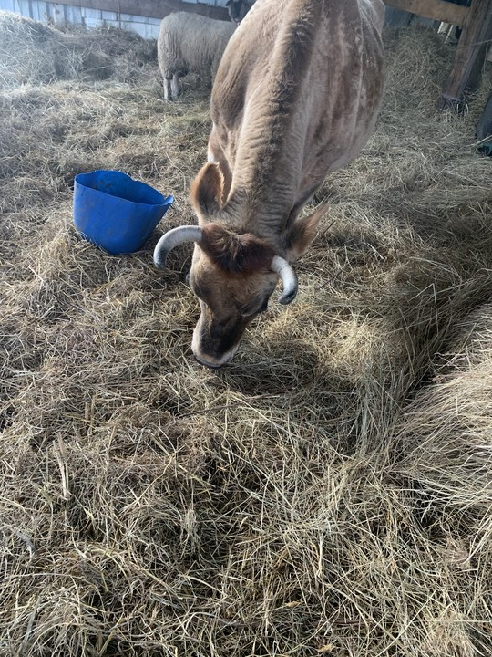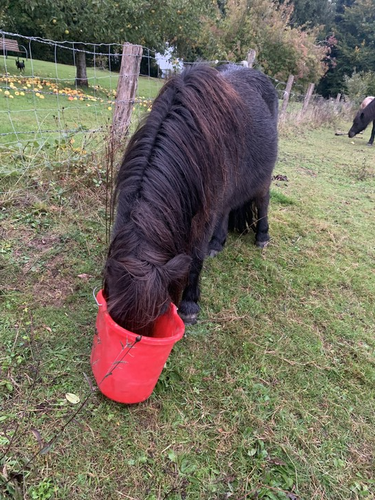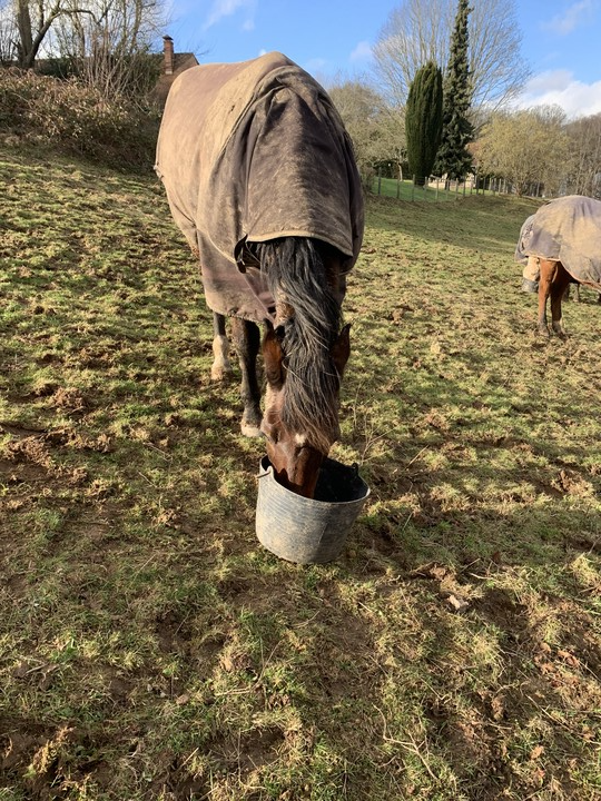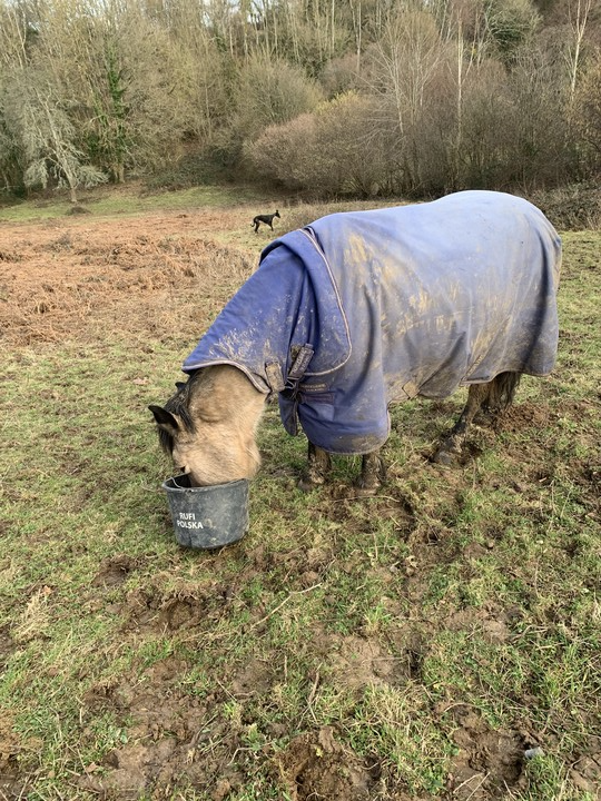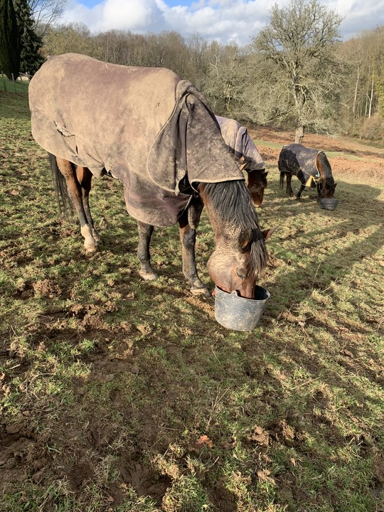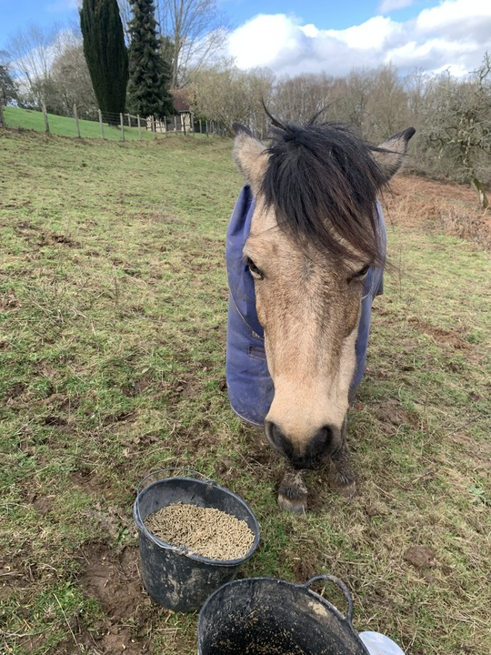 Flower : Flower eats the pellets with appetite. She likes this ritual and it helps her get through the winter as grass is not very present at this time.