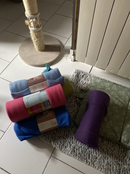 RomΓ©o : Hello. Our beautiful and sweet Romeo will appreciate the blankets because on this day and night of storm, it will be more cozy with beautiful and new dry blankets. The kitties thank you from the bottom of their hearts. See you soon.