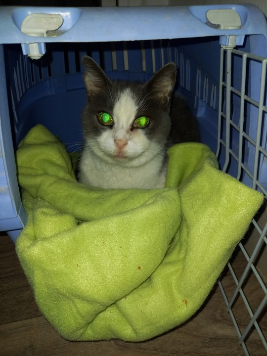 Odin : Unfortunately, despite his surgery, Odin is not doing well. Pus keeps flowing from his ears and also from his nose. He is currently on antibiotics and twice a day, I put drops in his ears and clean his nose several times a day.