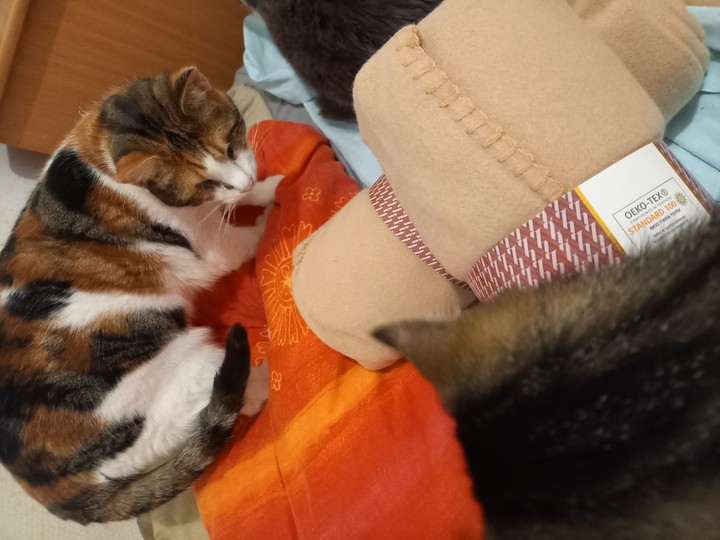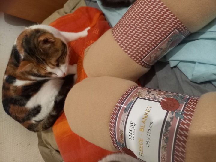Milka : She's starting to get old, our granny, so she loves the warmth of the blankets, and wherever there is one, she settles down to sleep or rest.