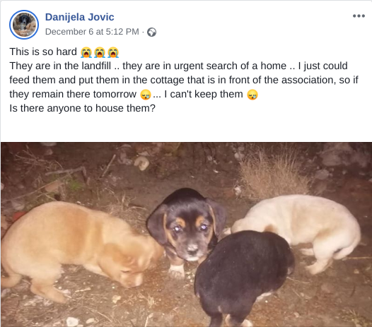 "We’re exhausted. The places that could take the dogs in are overcrowded, the dogs that are with us have nowhere to go, and there is no room for the ones that arrive. Most of the non-profit societies that try to make a difference are made of only two or three passionate people. It’s just the two of us here, and right now, we’re at our limits. If you can, share our dogs’ stories and help us find forever homes for them. That is our end goal. But we can’t do that if they starve. We need your help."