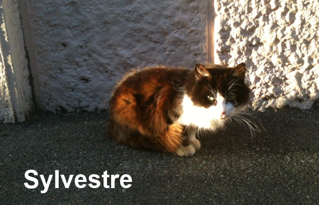 Sylvestre ne se nourrissait que dans les poubelles, jusqu'à ce qu'une riveraine alerte Sabine, la présidente de l'association « C'est un chat qui a dû vivre toute sa vie dans la rue. Il a un certain âge, peut-être une dizaine d'années, on ne sait pas trop, parce qu'il ne se laisse pas approcher. On a commencé à le nourrir avec des aliments adaptés aux chats, pour qu'il aie autre chose que des déchets à se mettre sous la dent. »
