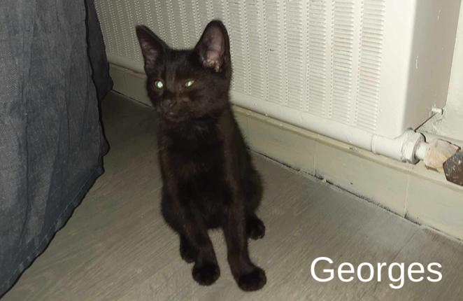 Georges est un chaton de seulement trois semaines, que nous avons trouvé dans un parc en pleine nature. Il était avec ses frères et sa sœur, sans leur mère, enfermé dans une caisse de transport !