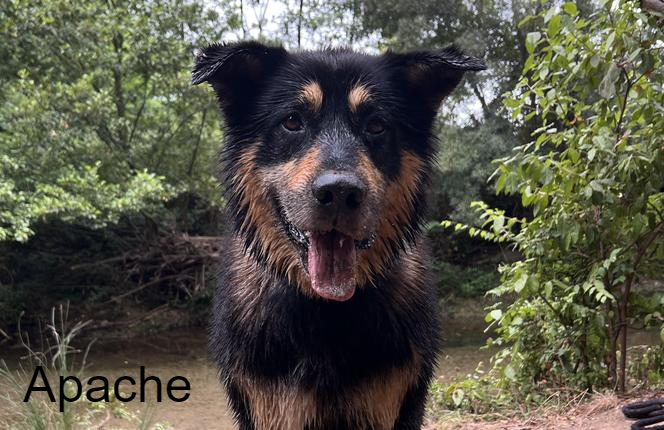 Apache est un chien de huit ans, qui souffre de dermatite. Il se gratte énormément et a des plaques et des irritations. Nous avons dû le faire tondre. Tous ses symptômes le rendent nerveux, si bien qu’il a perdu beaucoup de poids…