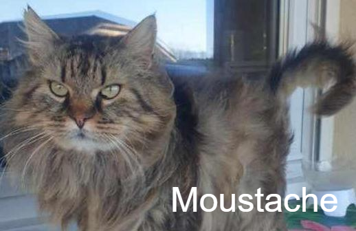 Moustache est un chat d’environ 13 ans, qui est arrivé tout seul depuis la forêt. Il est très sauvage, et pas suffisamment sociable pour espérer être adopté.