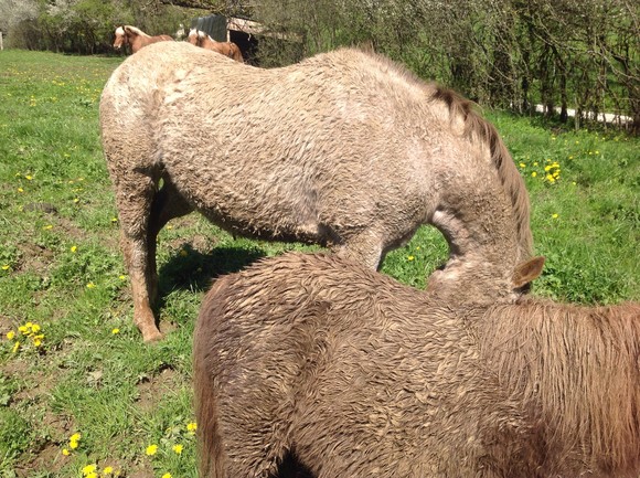 Avant de les adopter à l'association, Christelle passait régulièrement voir Daylight et Zaza dans leurs prés. Quant à elle a appris que l'agriculteur qui les détenait voulait s'en débarrasser, elle a tout de suite eu très peur que Daylight et Zaza soient séparés, alors qu'ils ont toujours vécu ensemble.