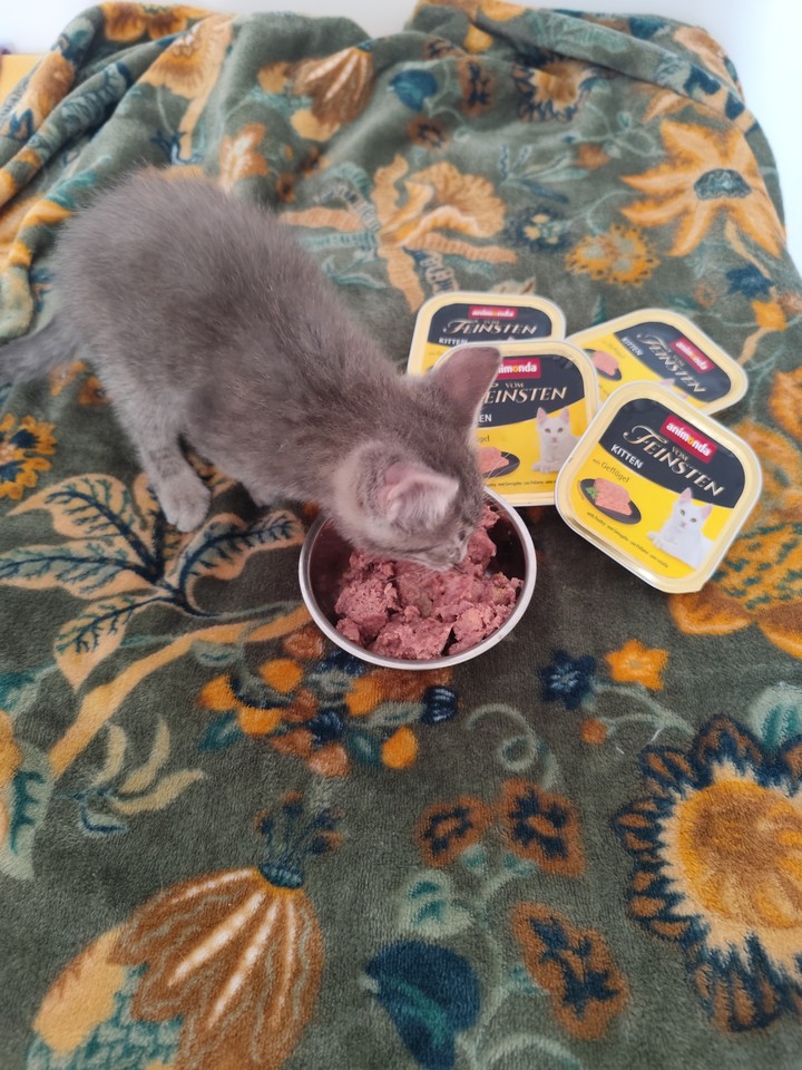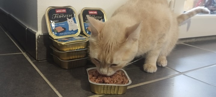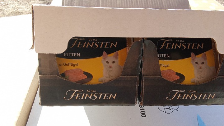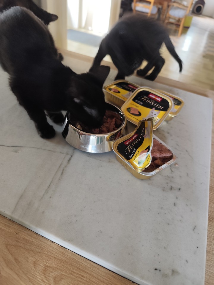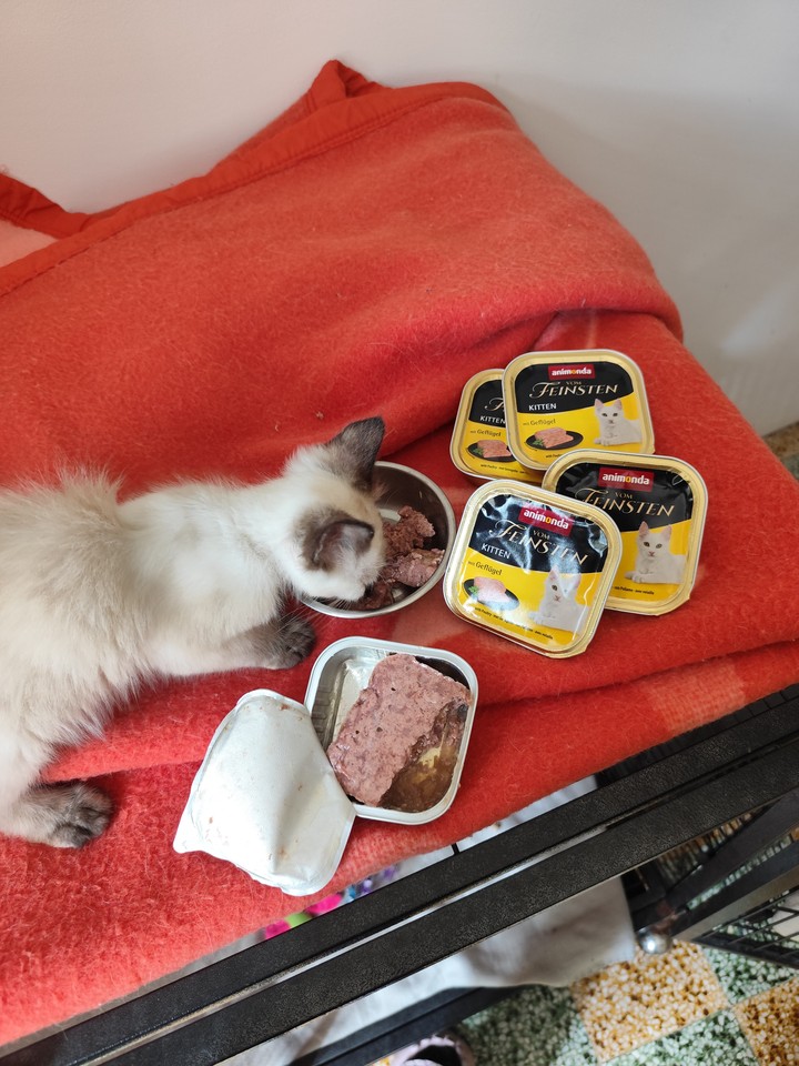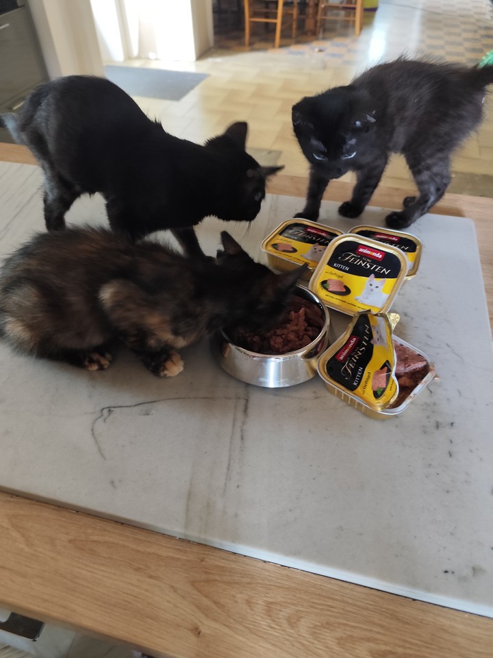 Mia : Mia se régale des boîtes ! Elle n’hésite pas une seconde à se jeter sur sa gamelle tant aimée ! De par son passé de maltraitance, elle est compliquée à prendre en photo, mais elle progresse bien et la pâtée l’aide à nous accorder sa confiance.