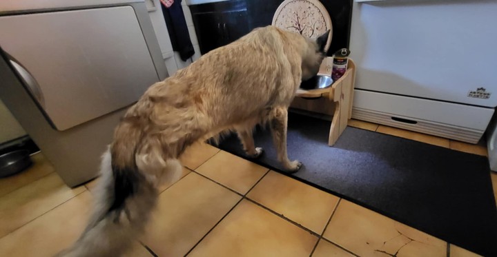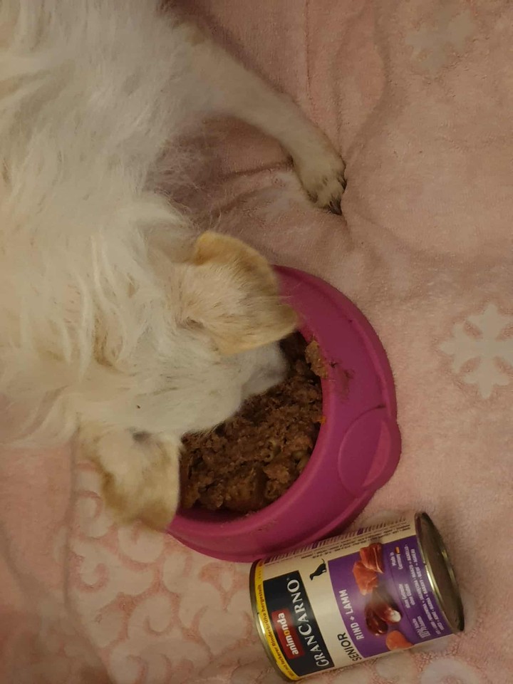 Biscotte : Notre pauvre Biscotte a toujours ses problèmes d'otite depuis son arrivée chez nous. Aucun traitement n'a pu l'aider jusqu'à présent. Il a rendez-vous avec le chirurgien dans quelques jours pour une éventuelle opération du conduit auditif. Par ailleurs, malgré son syndrome d'Addison, il adore sa nouvelle pâtée.