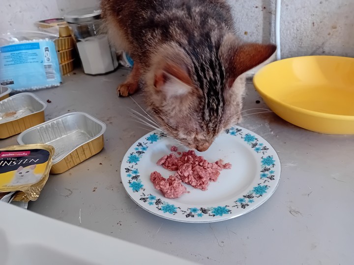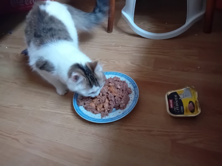 Vanille : Vanille va très bien, elle adore les pâtées pour chatons. Bientôt, elle sera stérilisée, identifiée et adoptée par une famille très gentille.