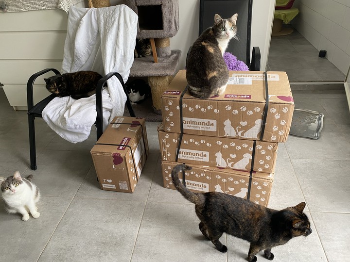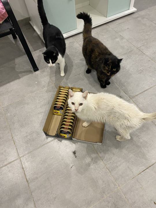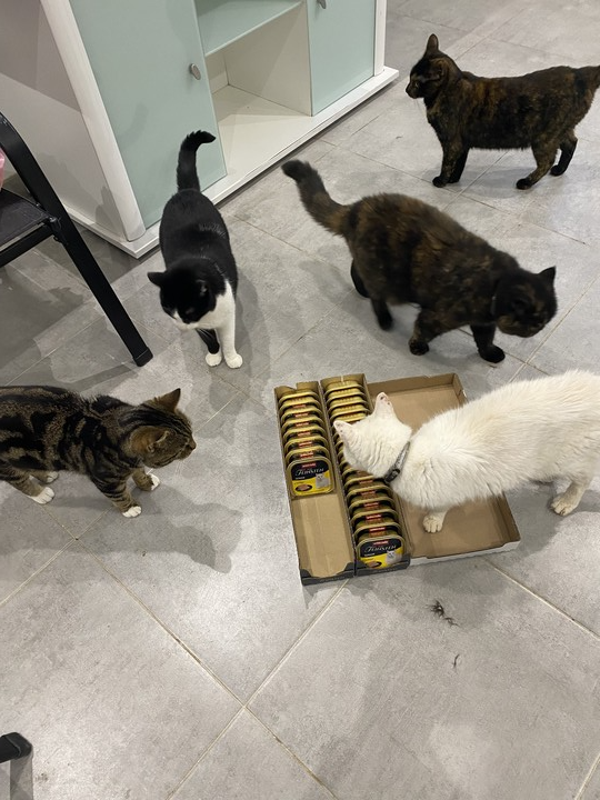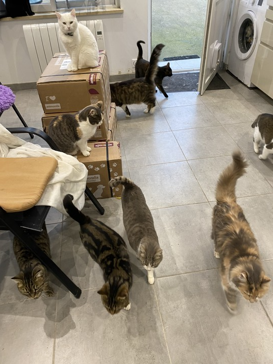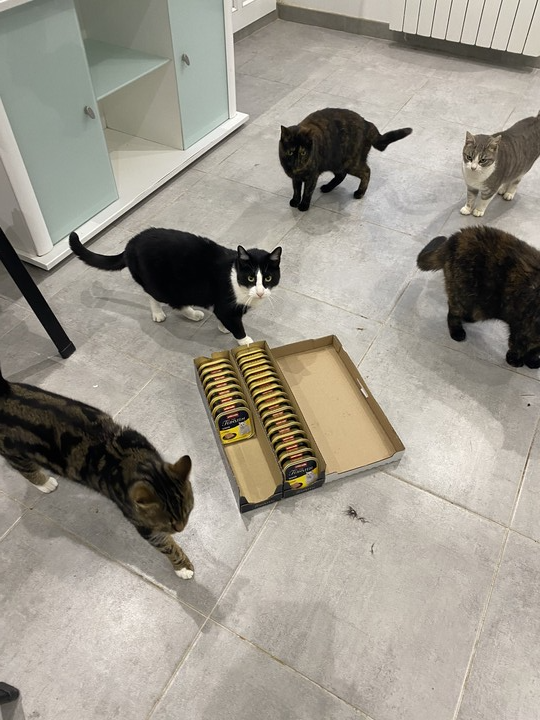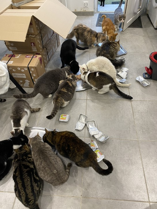 Chers donateurs, je vous remercie du fond du cœur pour votre générosité et fidélité pour notre association qui n'existe que grâce à des gens comme vous. Nous ne pouvons pas continuer nos sauvetages sans aide. Les adoptions sont rares et uniquement pour des animaux jeunes et en bonne santé. Les autres resteront chez nous et finiront leur vie chez nous. Un très grand merci encore une fois. Les boîtes sont de très bonne qualité et appréciées par nos chers félins.
