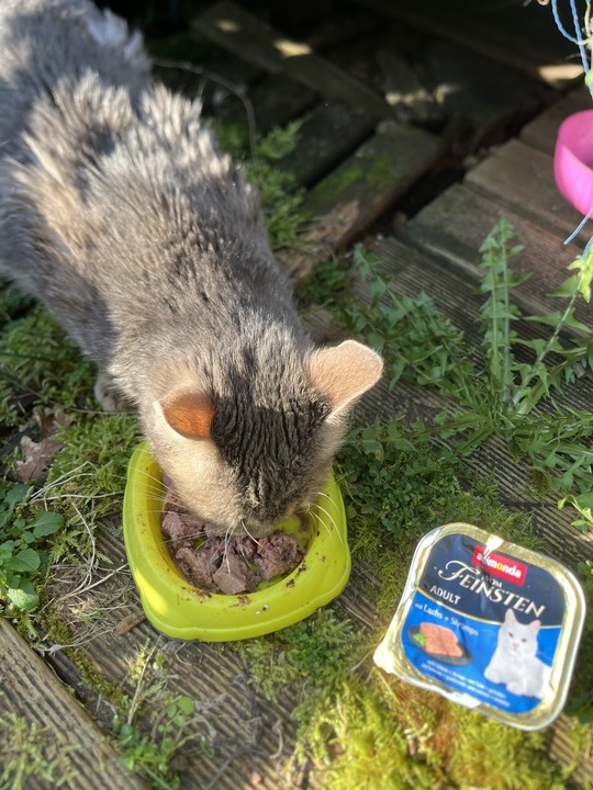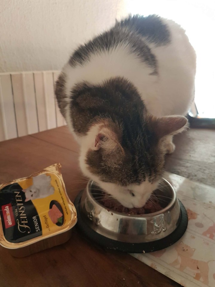Sacha : Sacha, c'est notre doyenne avec plus de 20 ans d'existence ! L'alimentation spécifique Animonda dont elle vient d'être dotée correspond tout à fait à ses besoins et à son appétence.