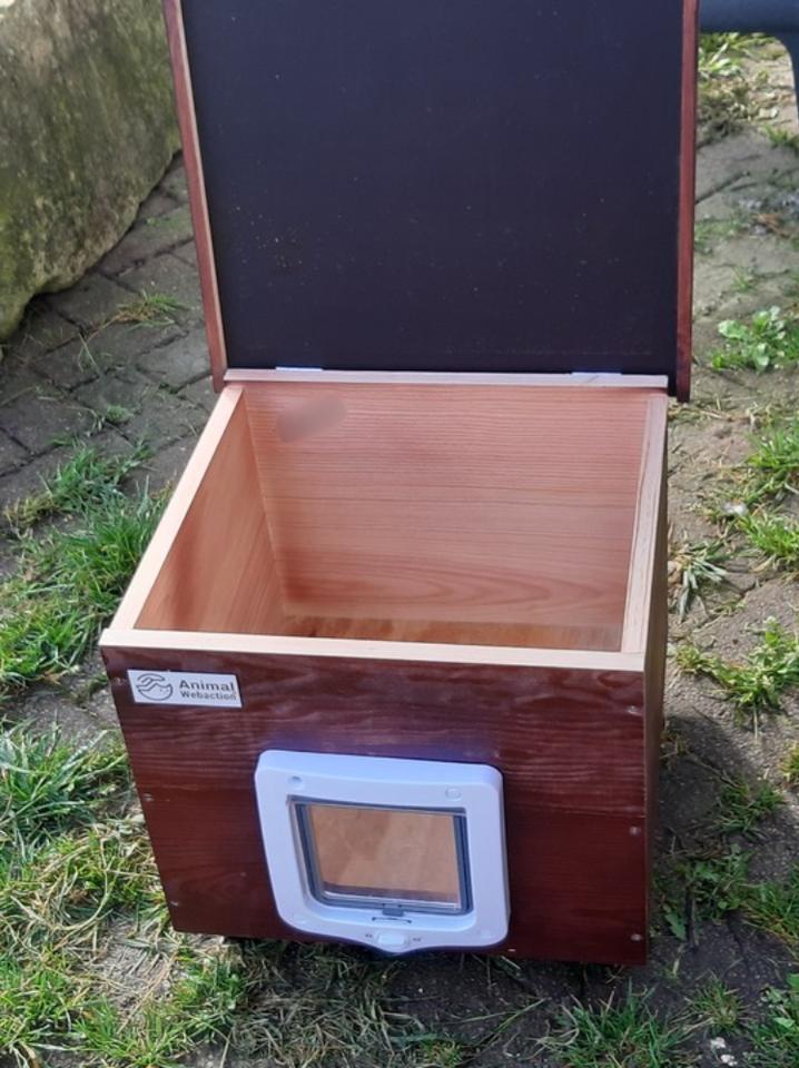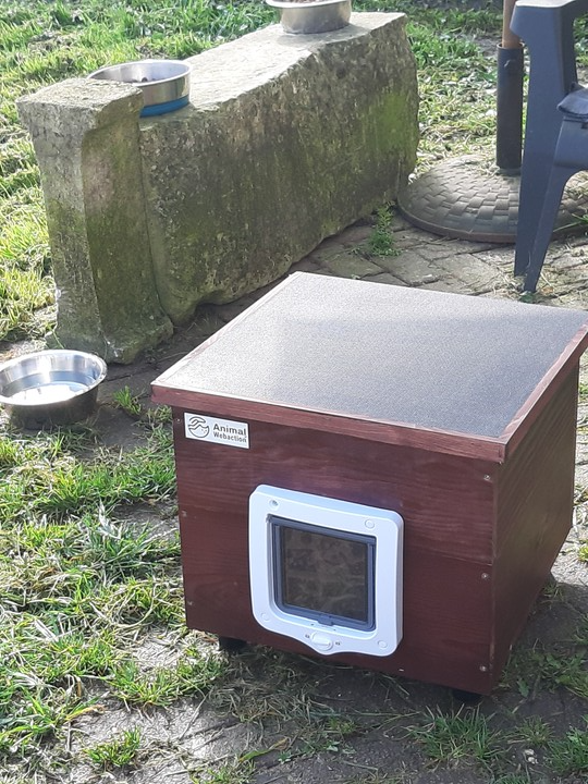 Bonjour, l'association et Rambo remercient infiniment tous les donateurs d'avoir permis à Rambo de pouvoir dormir au chaud, même à l'extérieur. Malheureusement, Rambo est sauvage, donc il est difficile de faire la photo avec Rambo à l'intérieur de sa petite maison. ❤