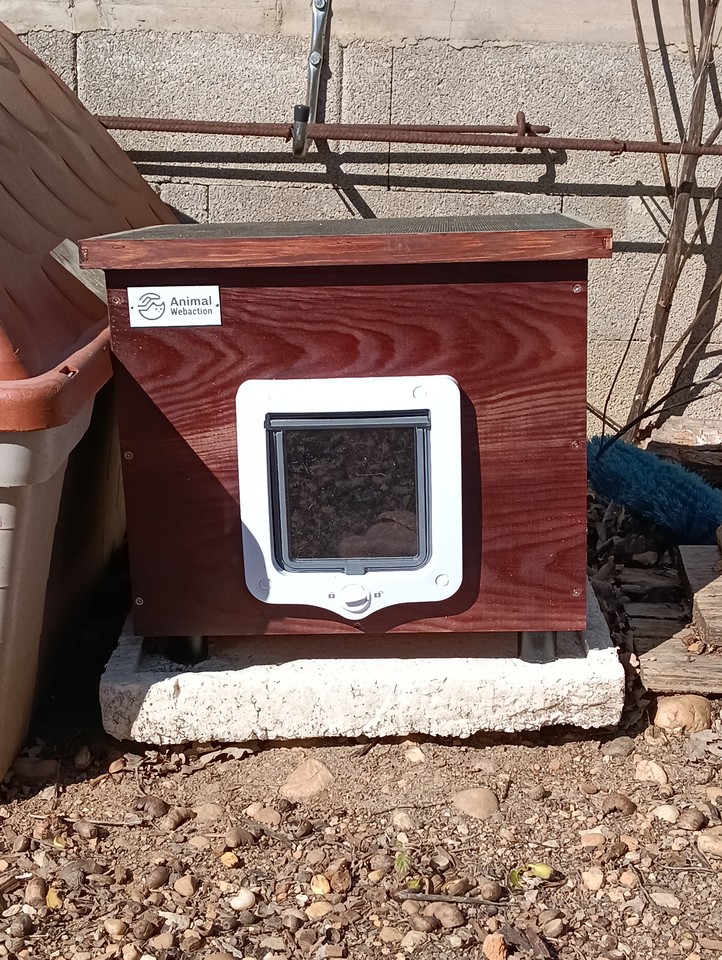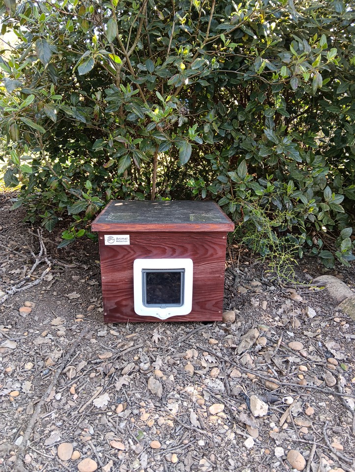 Noiraud : Noiraud va mieux, mais ses yeux sont toujours abîmés. Il y voit très peu mais se repère, se cache beaucoup dans les arbustes et est toujours très méfiant. J'espère qu'il fera bon usage de son abri. Merci à vous tous.