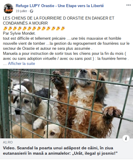 En juillet dernier, la mairie annonce une nouvelle catastrophique pour les chiens emprisonnés à al fourrière d'Orastie : l'établissement va fermer ses portes, tous les chiens y seront donc euthanasiés !