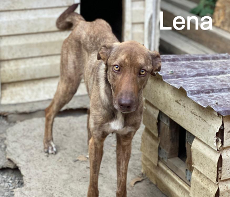 "Lena alias "Lenochka" est une chienne de 3 ans. Nous l'avons trouvée dans une des rues centrales de Sotchi. Elle était attachée à un poteau et était extrêmement maigre. Elle était presque morte de faim...